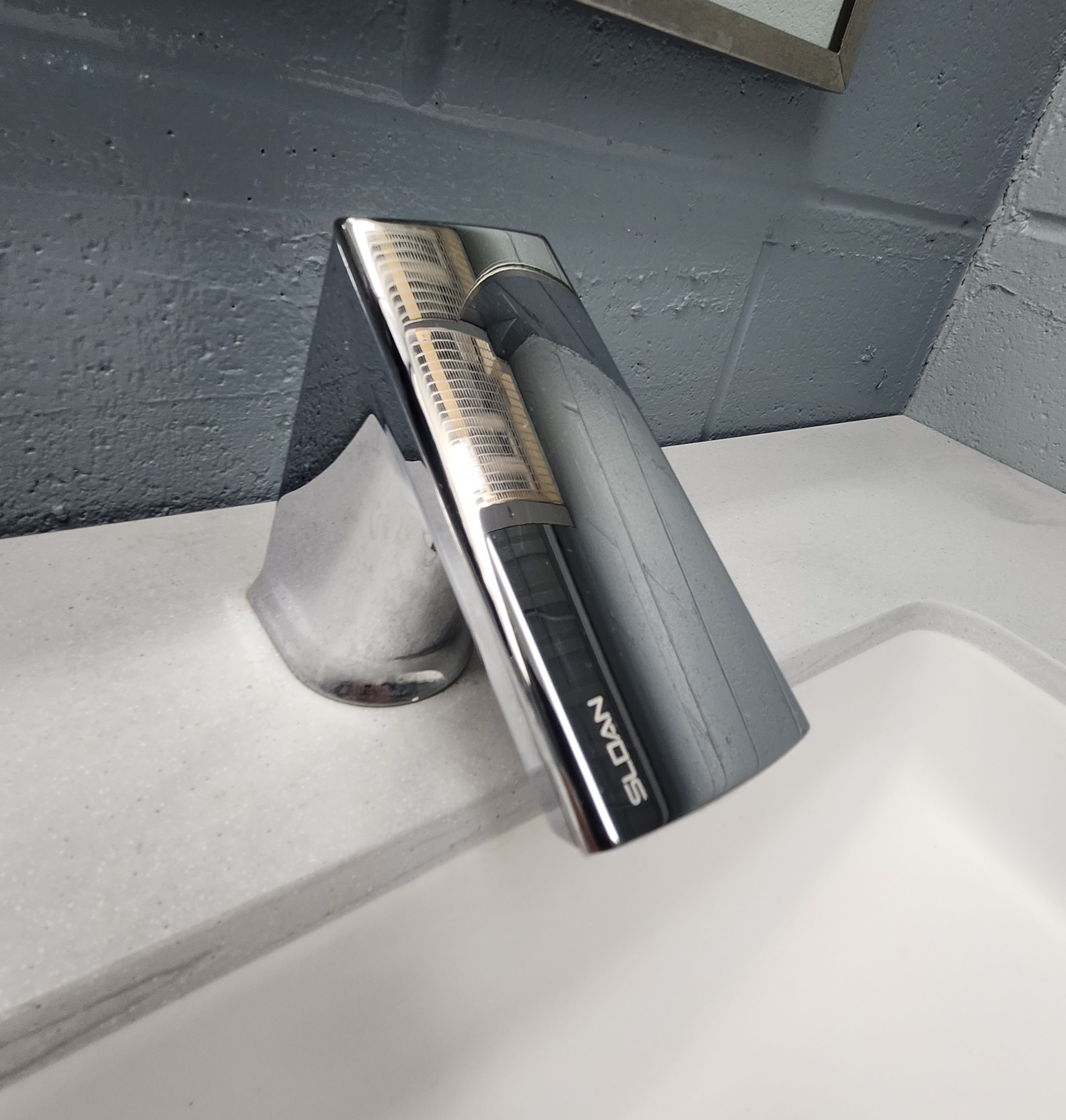 For this upgrade, the Sloan EFX-300 BASYS Faucet was selected — a hardwired, low-profile solution engineered for the realities of high-traffic public spaces.