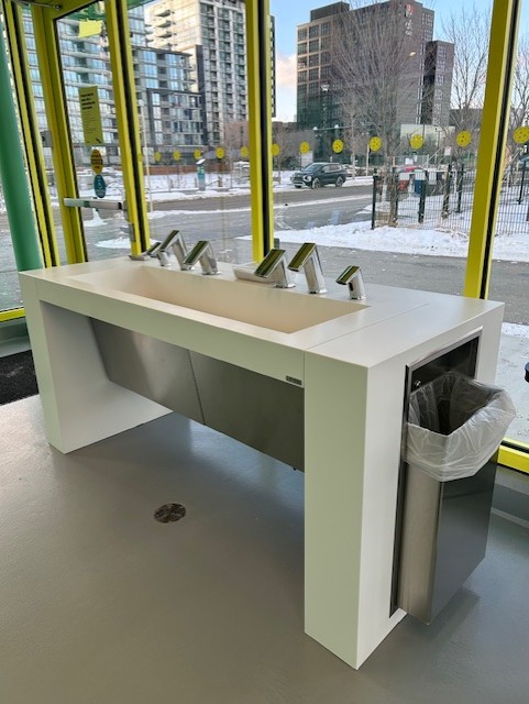 The compact layout and highly visible design of the facility highlight two key goals: ease of maintenance and long-term durability. With Sloan’s integrated system, water stays within the basin, reducing mess and keeping the space cleaner. Touchless technology minimizes wear and supports energy and water efficiency—crucial considerations for high-traffic public washrooms.