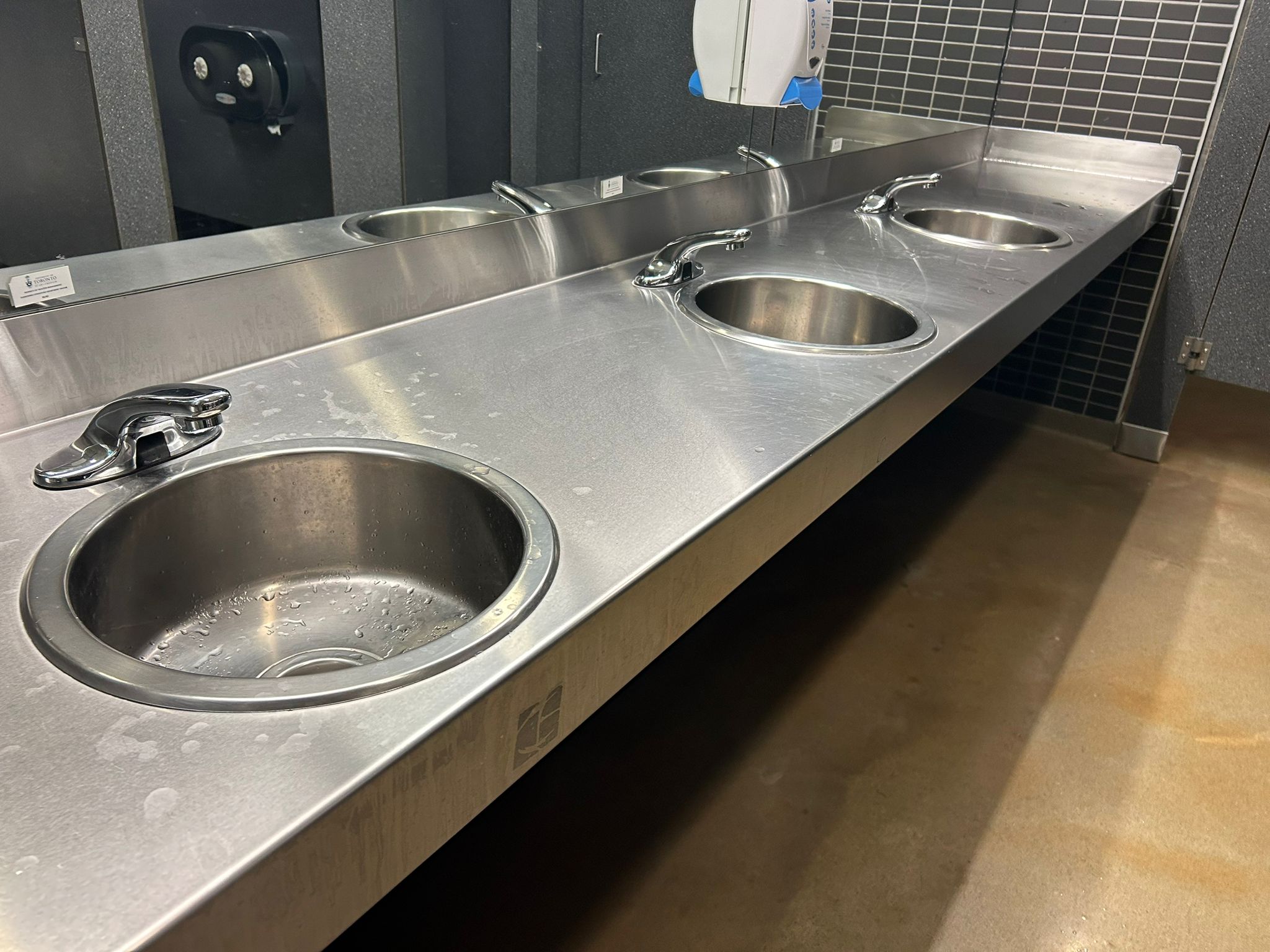 A busy campus hub deserves fixtures that keep up. The UTSC Student Centre—home to the food court, campus radio, study spaces, multi-faith rooms, equity office, and the health centre—recently elevated its washroom experience with Sloan’s EBF-650 touch-less faucets.